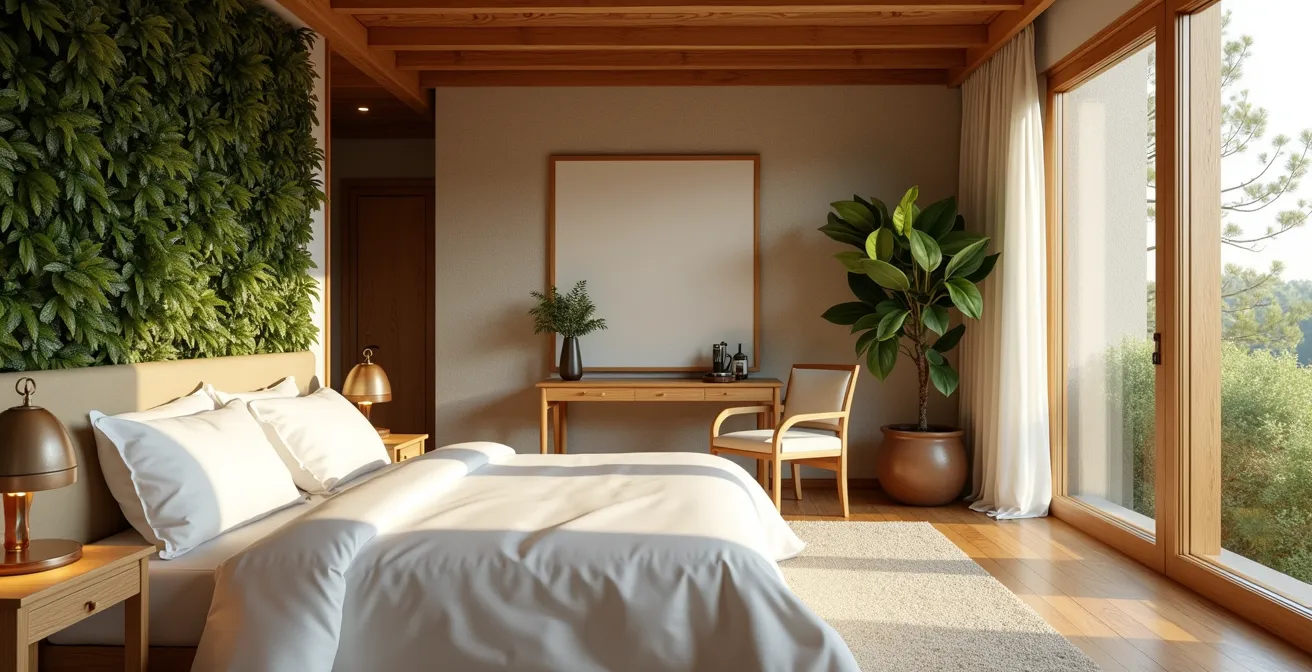 La qualité d’une nuit ne dépend pas que du silence ou de l’obscurité. Elle est intimement liée à la qualité de l’air que vous respirez. Une chambre d’hôtel standard, avec ses moquettes, peintures et matelas synthétiques, peut devenir un concentré de polluants invisibles. Le premier critère d’un design sain est donc le choix de matériaux qui « respirent » et ne contaminent pas l’environnement intérieur. Le lin, le coton biologique, la laine, le latex 100% naturel ou le bois massif non traité sont des alliés précieux pour un sommeil réparateur.