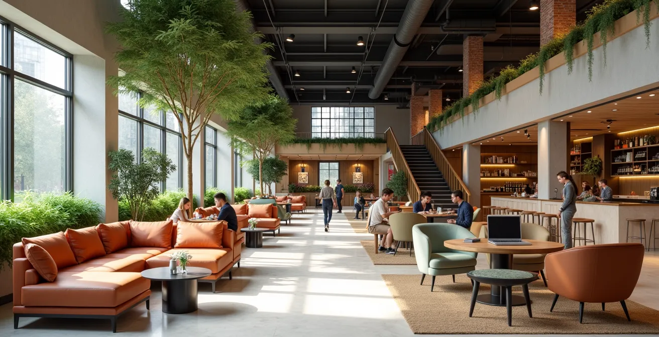 Le lobby traditionnel était un purgatoire : un espace de transition froid où l’on attendait sa clé. Aujourd’hui, il est devenu le cœur battant de l’hôtel lifestyle, un véritable salon urbain. Ce changement radical répond à une demande de socialisation et de flexibilité. Le voyageur moderne ne veut plus être confiné à sa chambre pour travailler ou se détendre. Il cherche un lieu animé où il peut côtoyer d’autres personnes, qu’elles soient clientes de l’hôtel ou habitantes du quartier. Le lobby se transforme en un écosystème social multifonctionnel : espace de coworking le jour, bar à cocktails le soir, galerie d’art éphémère le week-end.